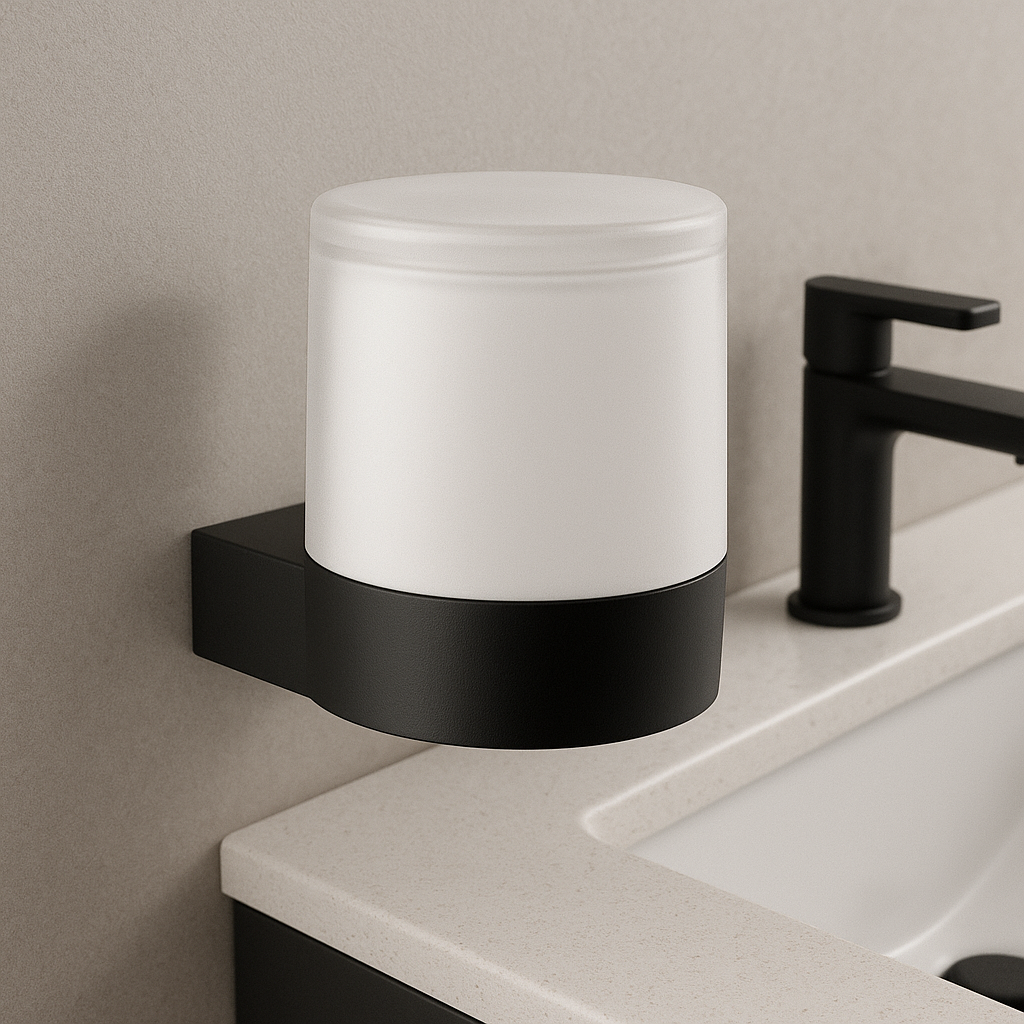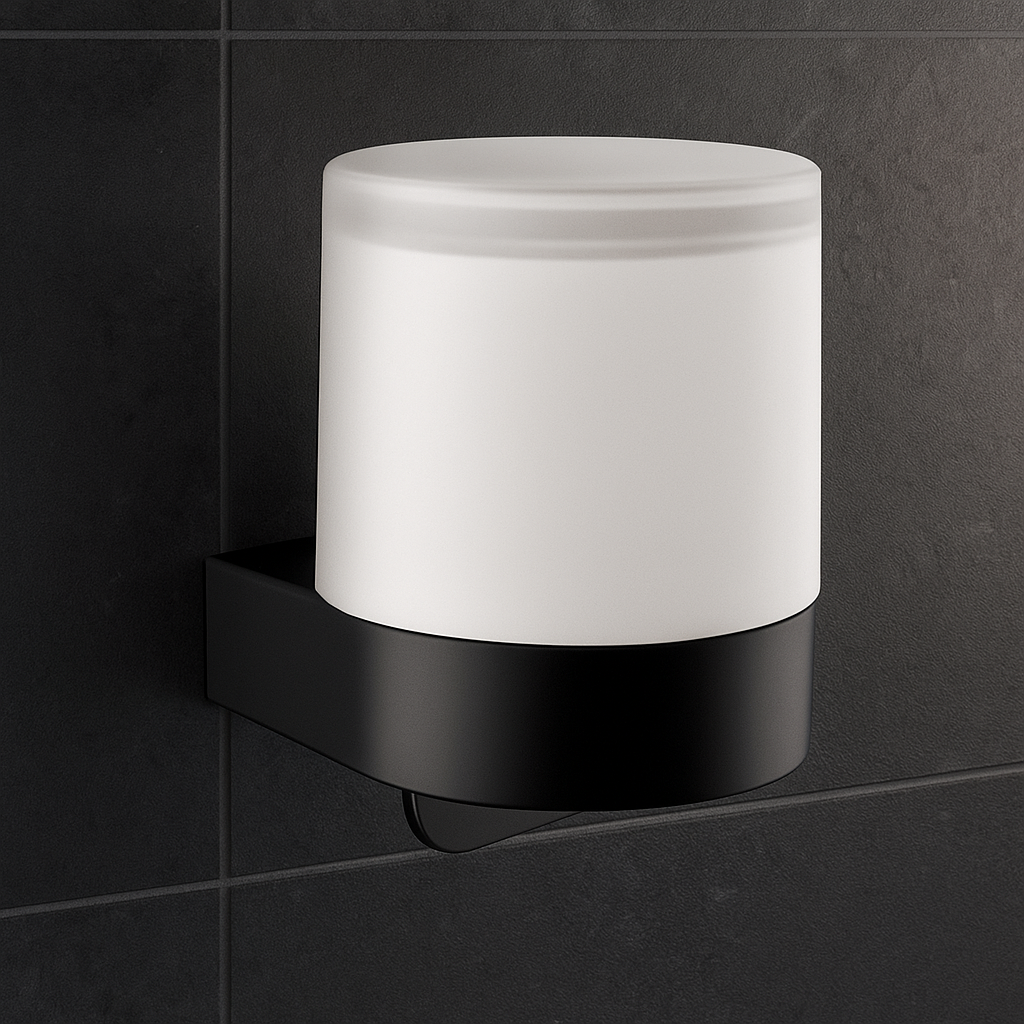Der „Noir & Neige“ Seifenspender vereint minimalistisches Design mit maximalem Stil. Die matt-schwarze Wandhalterung trifft auf ein satiniertes Glas – perfekt für moderne Badezimmer, in denen jedes Detail zählt.