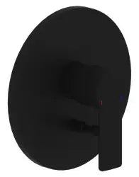 Hebel Metall, Kartusche 35 mm, Steuergehäuse +/- 18 Grad verstellbar, mit Heißwasserbegrenzer, mit Rohrbelüfter, mit Montagetiefenausgleich, Rosette rund Ø 178 mm und automatischer Umstellung, eigensicher gegen Rückfließen, matt schwarz